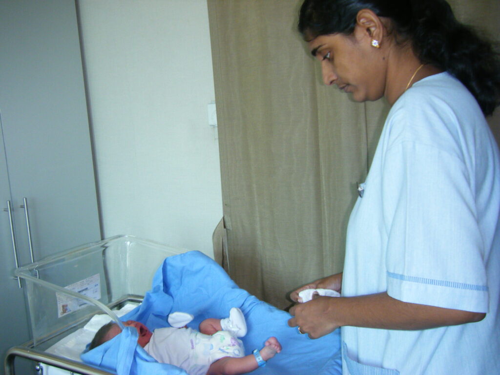 三好理枝さん:希望を聞かれる形でした。私は個室を選んでいたので、赤ちゃんは新生児室に預けて、私は個室でしっかり休ませてもらいました。疲れていたので助かりましたね。シンガポールの病院は母子同室かどうか選べるのが良いところだと思います。